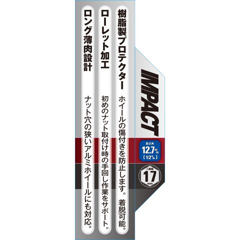 ・インパクトレンチ用のホイールナット着脱作業に適した仕様・設計です。