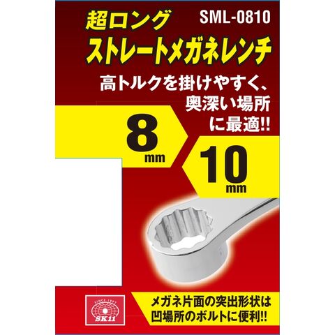 【DIY 工具 ツール SK11 超ロングストレートメガネ SML-0810 作業工具 スパナ ロングメガネレンチ 4977292297417】