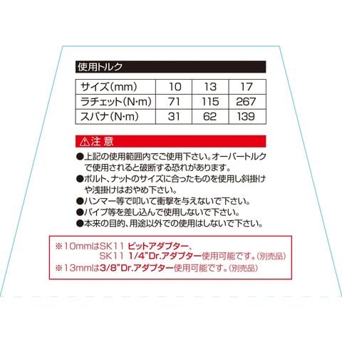品名 SK11 ラチェットレンチセット SGR-N3SET