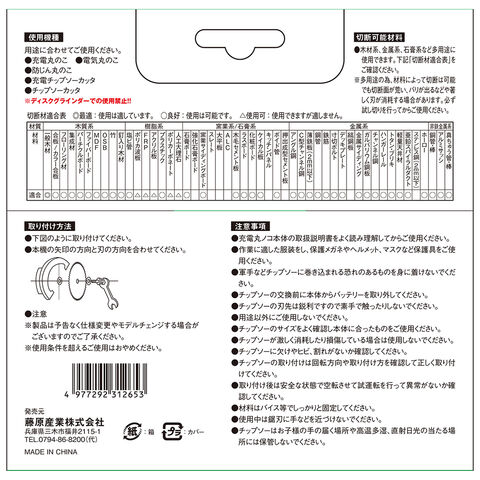 ●多用途の為、材料によって切断は可能でも切断面が荒い、バリが出るなどや著しく刃が消耗する場合があります。必ず試し切りを行ってからご使用ください。●ディスクグラインダーで使用しないでください。