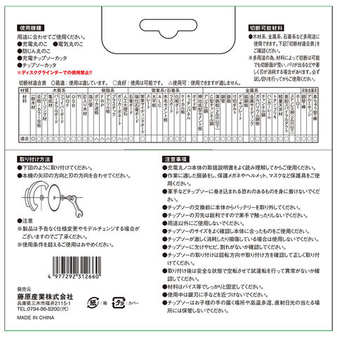 ●多用途の為、材料によって切断は可能でも切断面が荒い、バリが出るなどや著しく刃が消耗する場合があります。必ず試し切りを行ってからご使用ください。●ディスクグラインダーで使用しないでください。
