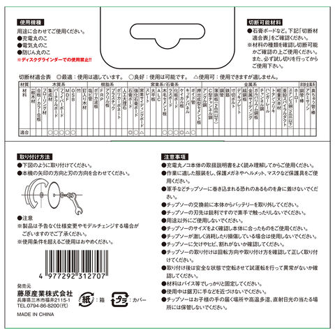 ●材料の種類を確認し切断可能かご確認の上ご使用ください。また、必ず試し切りを行ってからご使用下さい。●ディスクグラインダーで使用しないでください。