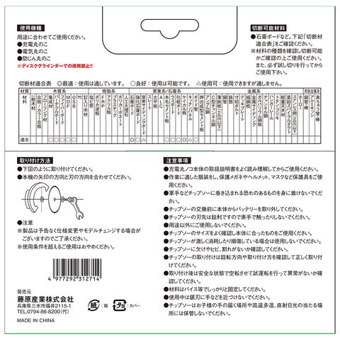 ●材料の種類を確認し切断可能かご確認の上ご使用ください。また、必ず試し切りを行ってからご使用下さい。●ディスクグラインダーで使用しないでください。
