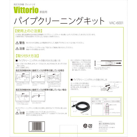 品名 ZAOH パイプクリーニングキット VAC-6001