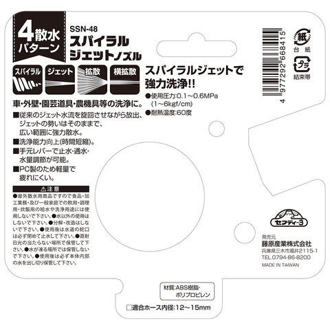 セフティ-3 スパイラルジェットノズル SSN-48 【FJtools セフティ-3 スパイラルジェットノズル SSN-48 園芸用品 散水用品 散水ノズル 4977292668415 】【おしゃれ おすすめ】