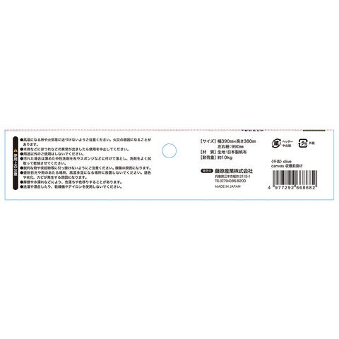 ●高温になる所や火気等に近づけないようご注意ください。火災の原因になることがあります。●本体などにほつれなどの異常が出ましたら仕様を中止してください。●用途以外のご使用はしないでください。汚れた場合は薄めた中性洗剤を布やスポンジなどに付けて落とし、洗剤をよく拭取って乾燥させてください。●鋭利な物や突起物等に引っ掛けないようにご注意ください。損傷の原因になります。●直射日光やあまのあたる場所、高温多湿になる場所に放置しないでください。退色や劣化、カビが発生する原因になります。●摩擦や水濡れなどにより、色落ちや色移りすることがあります。洗濯や漂白したり、乾燥機やアイロンを使用しないでください。