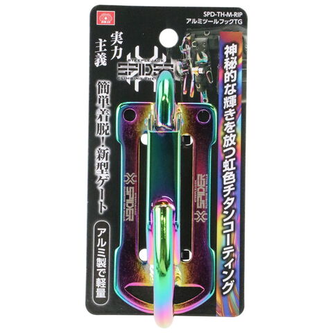 ・神秘的な輝きを放つ虹色チタンコーティングが施されたアルミツールフックです。