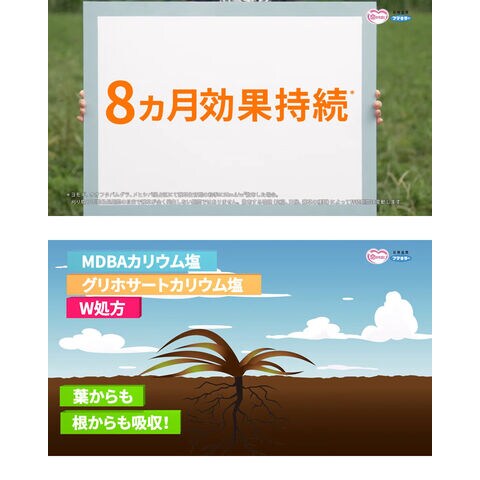 パワフル&ロングのダブル除草成分ですばやく枯らし、最長8ヵ月※効果が続きます。