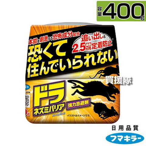 フマキラー ドラネズミバリア 強力忌避剤 400g 【最長2.5ヵ月定着防止 そのまま置くだけ ねずみ 鼠 ネズミ 恐怖成分 駆除 駆除剤 忌避剤 退治 撃退 対策 家ネズミ 強力に追い出す】【おしゃれ おすすめ】
