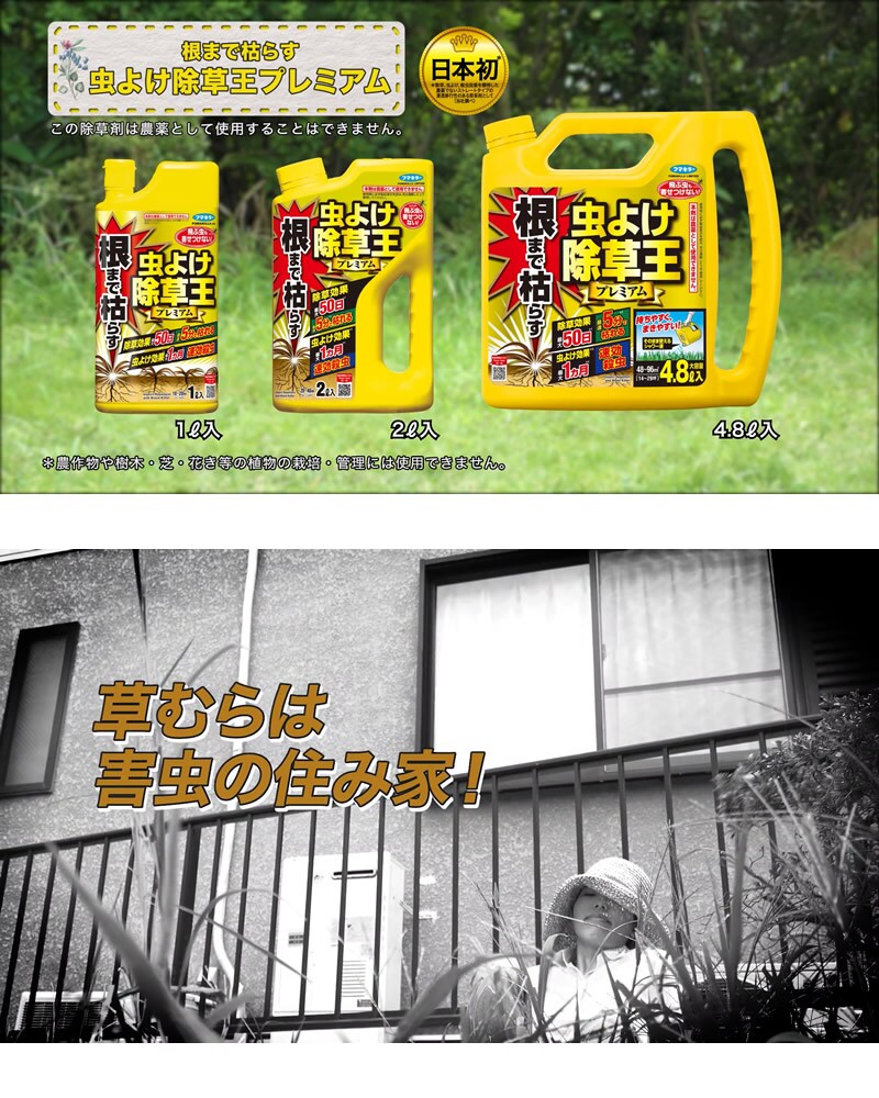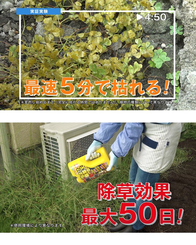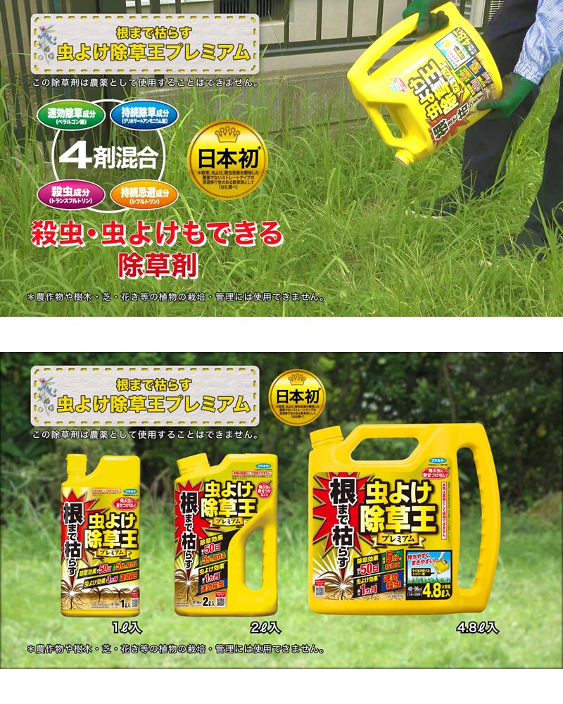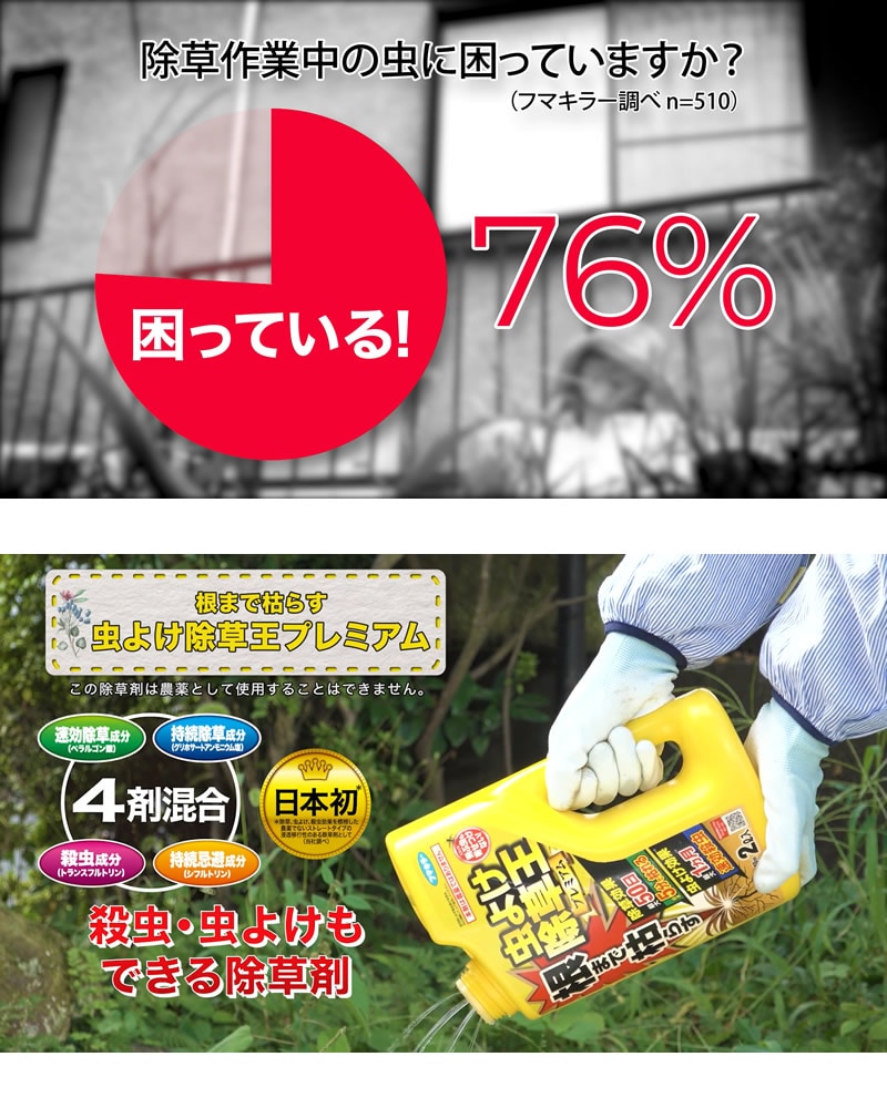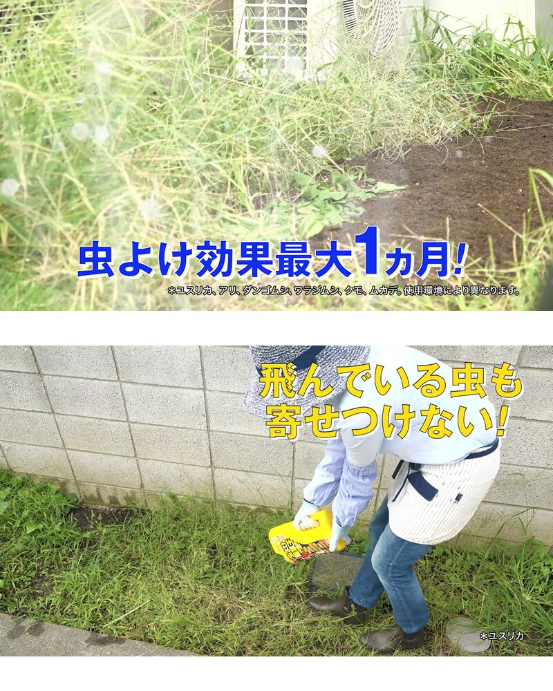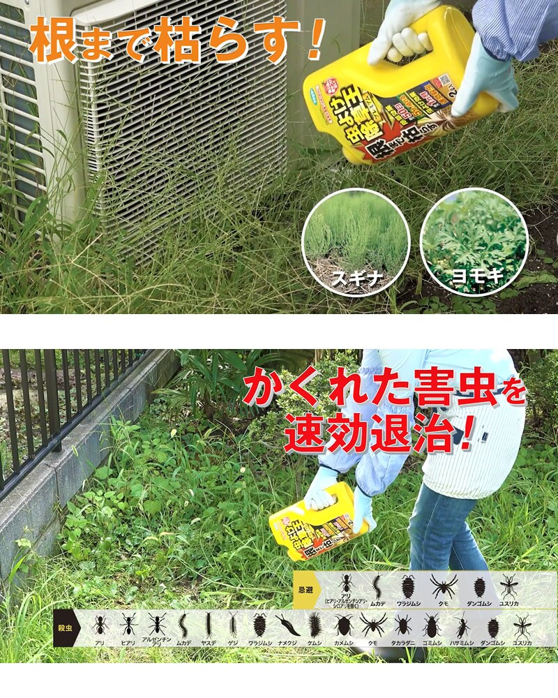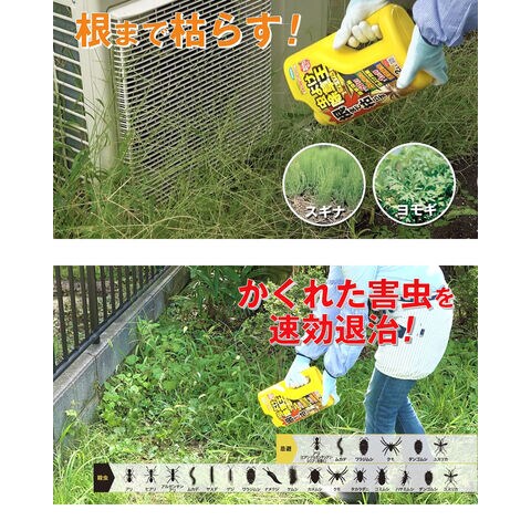 【根までしっかり枯らす 最大50日除草効果 雑草 対策 除草剤 虫よけ 殺虫効果 非農耕地用 速効 持続除草 殺虫 忌避 成分 クモ ムカデ アリ ダンゴムシ ナメクジ はう虫 退治 対策】