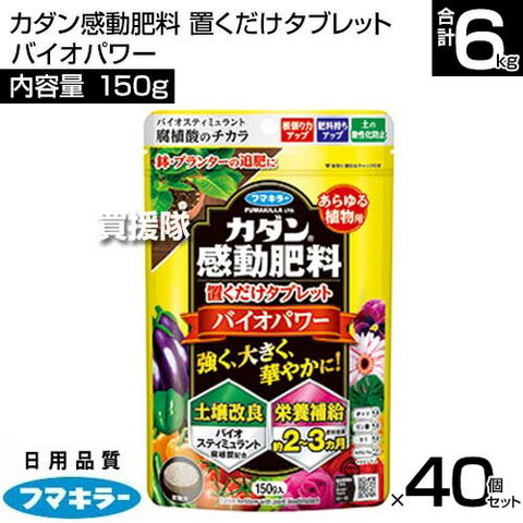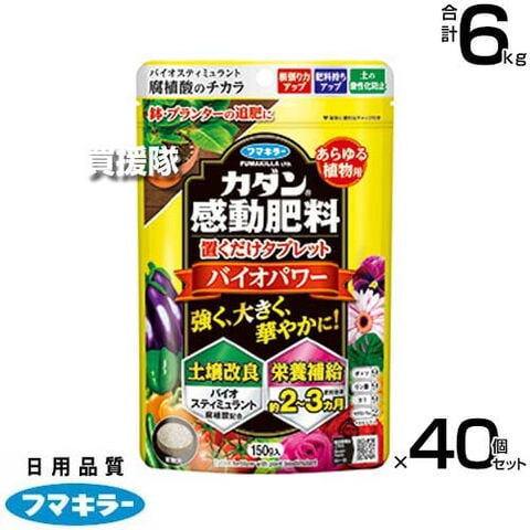 フマキラー カダン感動肥料 置くだけタブレットバイオパワー 150g×40個セット 【株元に置くだけ 肥料効果 約2~3ヵ月持続 さまざまな植物に使える 腐植酸を配合 土壌の酸性化を防ぐ 花 野菜 観葉植物 ハーブ】【おしゃれ おすすめ】