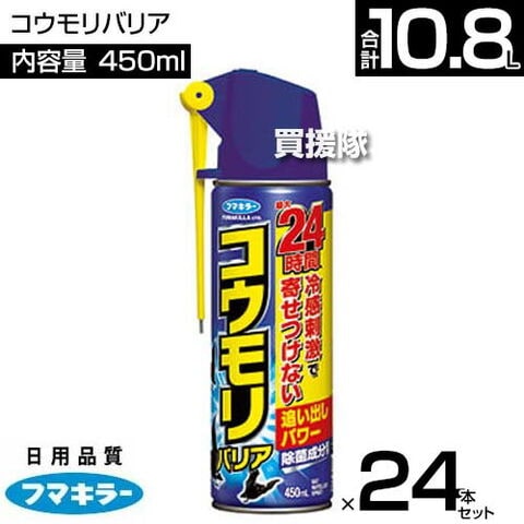 フマキラー コウモリバリア 450ml×24本セット 【蝙蝠 こうもり 嫌がる メントール 冷感刺激 最大24時間持続 忌避剤 除菌成分配合 玄関 軒下 戸袋 対策 被害 侵入 防止 忌避 逆さ噴射も可能】【おしゃれ おすすめ】