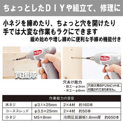 【日曜大工 修繕作業 組立家具 小径 ネジ締め 穴あけ 手締め機能付き ネジ ゆるめ 工具 電動工具 DIY ツール 工具 用品 大工 日曜大工】