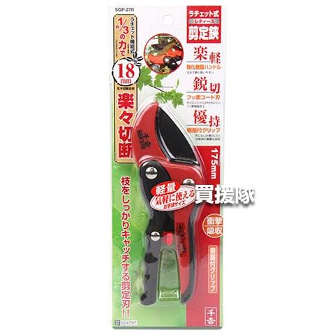 ラチェット機能付きで剪定作業が楽にできる剪定鋏です。