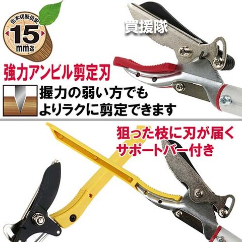 【鋏 ハサミ はさみ 園芸用 ガーデニング 軽い 超軽量 高所 剪定 整枝 収穫 アンビルタイプ刃 生木 木 強力 切断 切る つかむ スプリングキャッチ 5段階 フッ素コート刃】