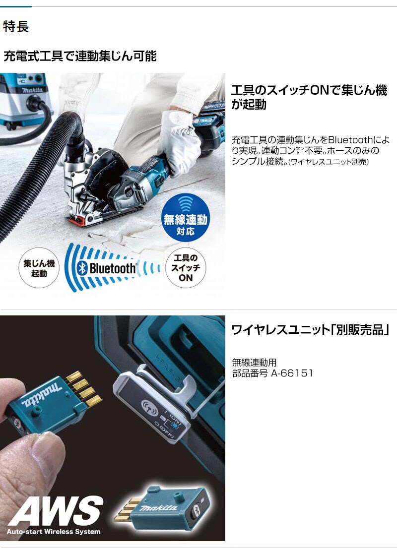 【工具のスイッチONで集じん機が起動】充電工具の連動集じんをBluetoothにより実現。連動コンセント不要。ホースのみのシンプル接続。(ワイヤレスユニット別売)