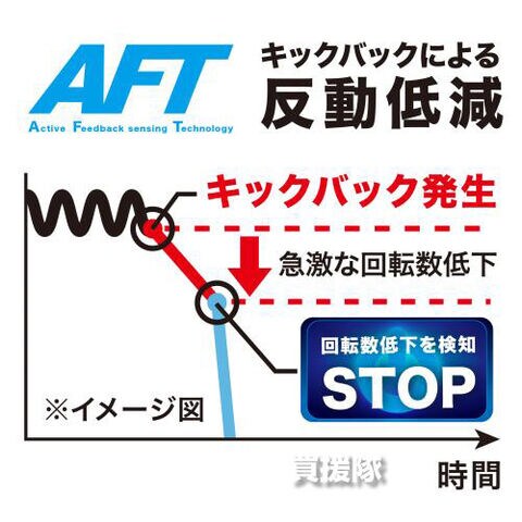 【キックバックによる反動低減】キックバック発生による急激な回転数低下を検知して停止。