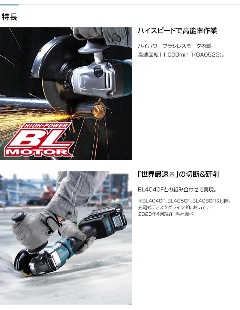 ※BL4040F、BL4050F、BL4080F取付時。充電式ディスクグラインダにおいて。2023年4月現在、当社調べ。