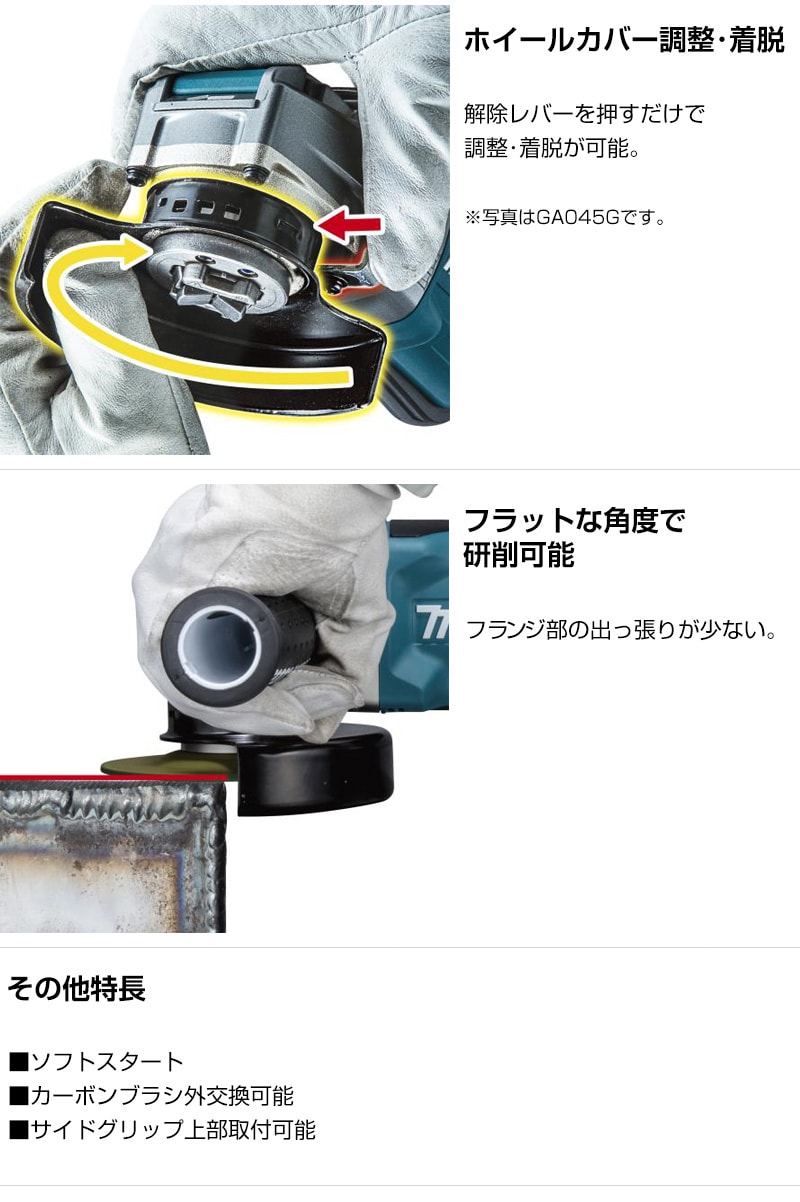 【フラットな角度で研削可能】フランジ部の出っ張りが少ない。