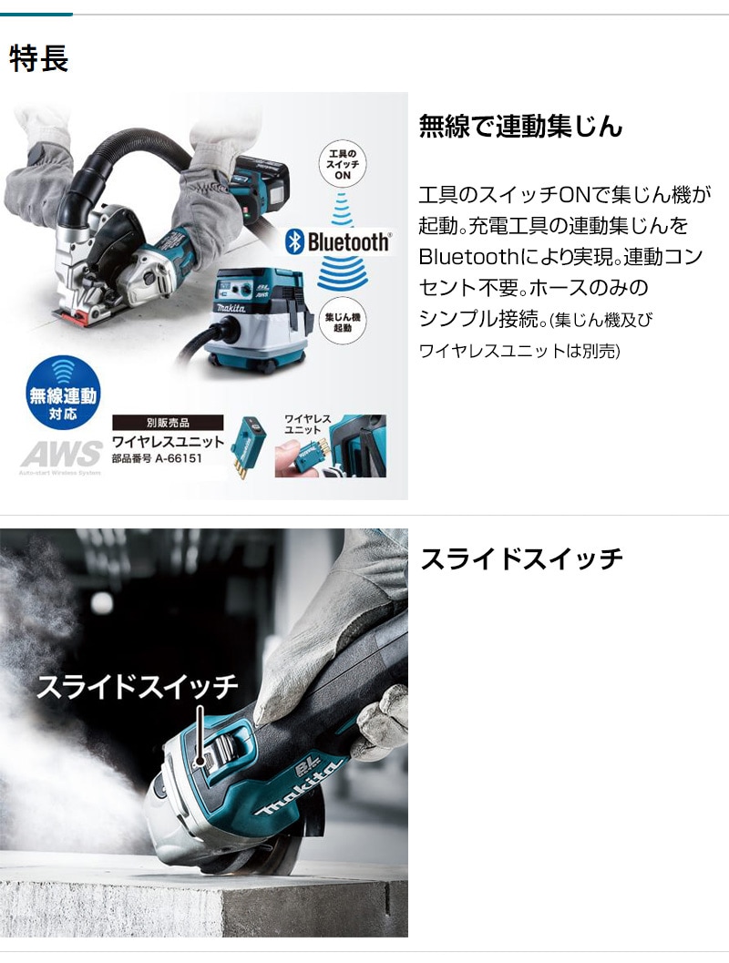 【無線で連動集じん】工具のスイッチONで集じん機が起動。充電工具の連動集じんをBluetoothにより実現。連動コンセント不要。ホースのみのシンプル接続。(ワイヤレスユニット別売)
