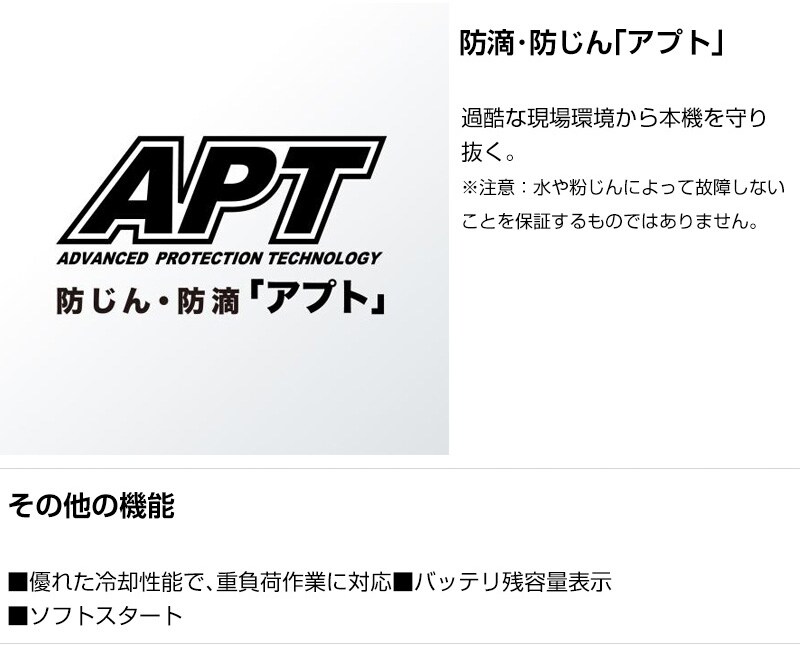 【防滴・防じん「アプト」】過酷な現場環境から本機を守り抜く。