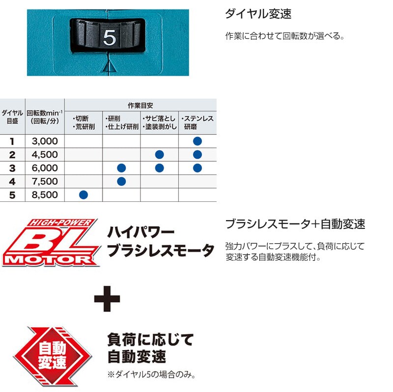 【ブラシレスモータ+自動変速】強力パワーにプラスして、負荷に応じて変速する自動変速機能付。