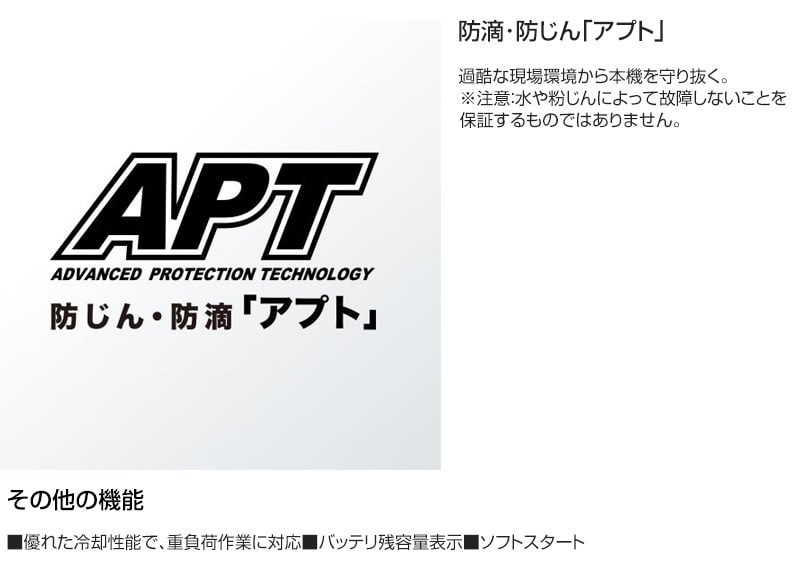 【防滴・防じん「アプト」】過酷な現場環境から本機を守り抜く。