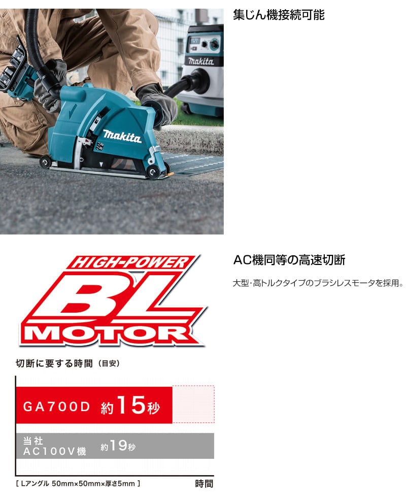 マキタ 36V 充電式ディスクグラインダ GA700DPG2 【18Vリチウムイオンバッテリー2個 AC機同等 高速切断 安心機能 研削 自動変速 キックバック低減 パドルスイッチ アプト ケース付 充電式 コードレス 工具 電動工具】【おしゃれ おすすめ】のレビュー