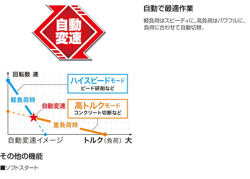 【自動で最適作業】軽負荷はスピーディに、高負荷はパワフルに、負荷に合わせて自動切替。