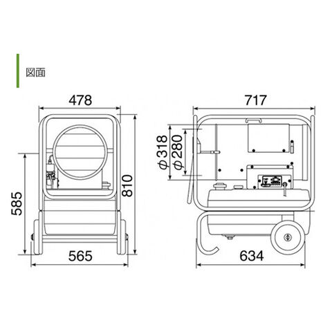 外形寸法(mm) H810×W565×D717、吐出口φ318