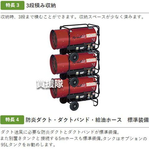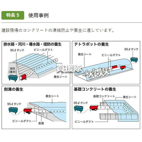 主な使用用途 建築現場でのコンクリートの凍結防止、養生、食品乾燥、各種工業品の乾燥