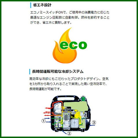エコノミースイッチONで、ご使用中の消費電力に応じた最適なエンジン回転数に自動制御。