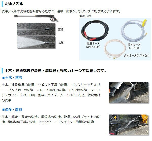 付属品 吸水ホース、余水ホース、ストレーナー、中間ストレーナー、高圧ホース (10m)