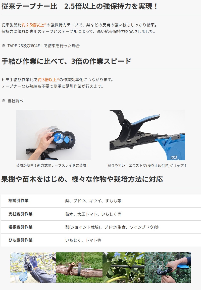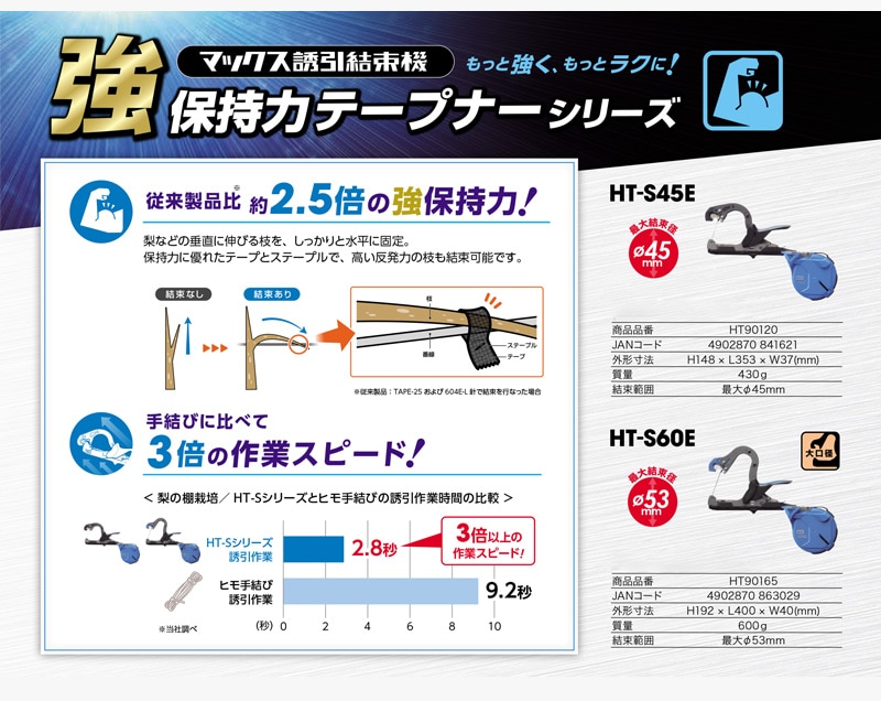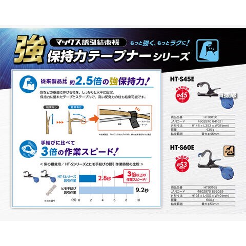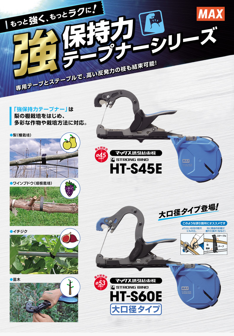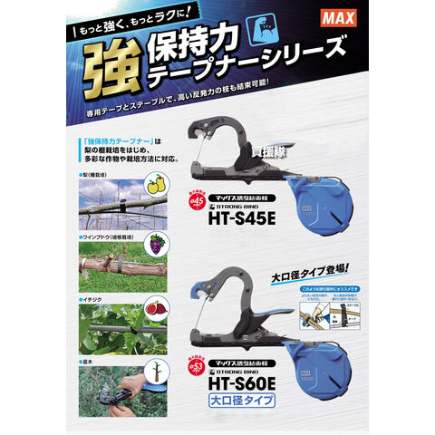 MAX 誘引結束機 強保持力 テープナー 大口径 HT-S60E HT90165 【マックス 太枝 結束可能径φ53mm 結束器 支柱 垣根 棚 ひも 誘引 作業 果樹園 苗木 梨 トマト ぶどう 葡萄 短梢主枝 飛ばし結束 農業 農作業 家庭菜園】【おしゃれ おすすめ】