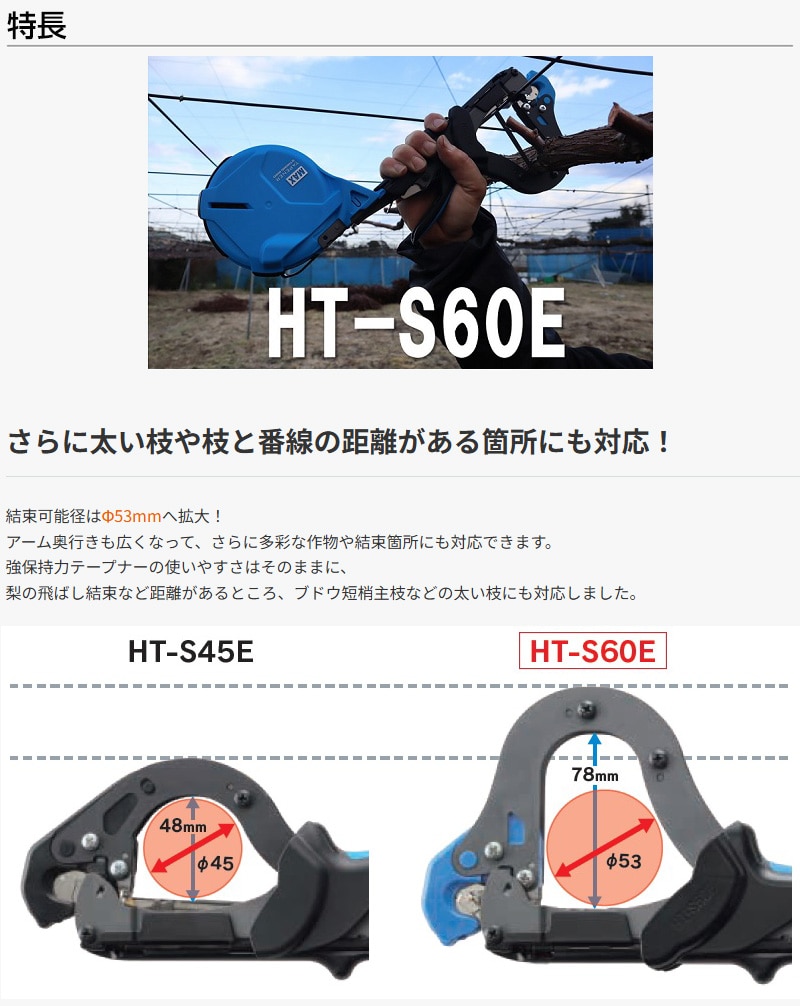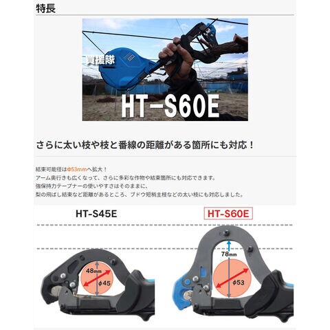 品名 誘引結束機 強保持力 テープナー 大口径 HT-S60E