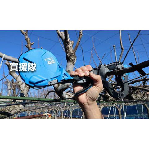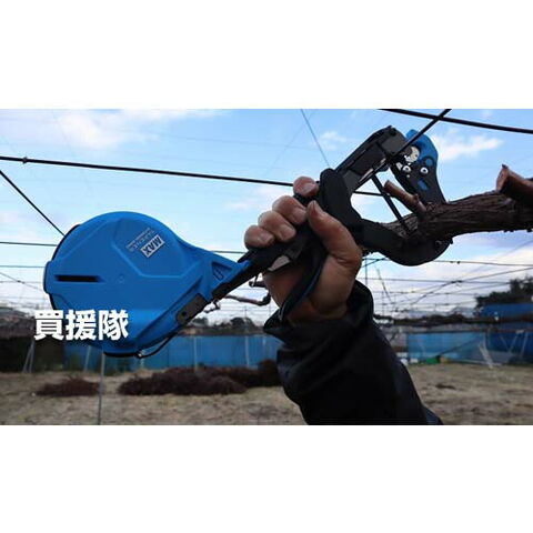 梨の飛ばし結束など距離があるところ、ブドウ短梢主枝などの太い枝にも対応しました。