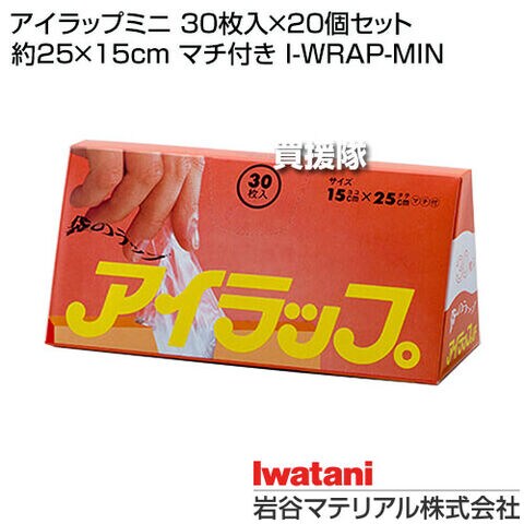 岩谷マテリアル アイラップミニ 30枚入×20個セット 約25×15cm マチ付き I-WRAP-MIN 【簡単 時短 料理 手間いらず 食品 冷凍 冷蔵 保存 新鮮さを保つ 温め 電子レンジ 湯煎 耐熱 ビニール 袋 災害 防災 非常用 便利グ】【おしゃれ おすすめ】
