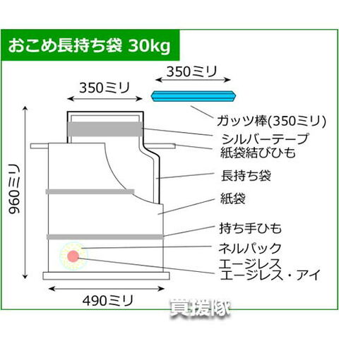 品名 30kg用 おこめ長持ち袋30 取手付き クリップ式