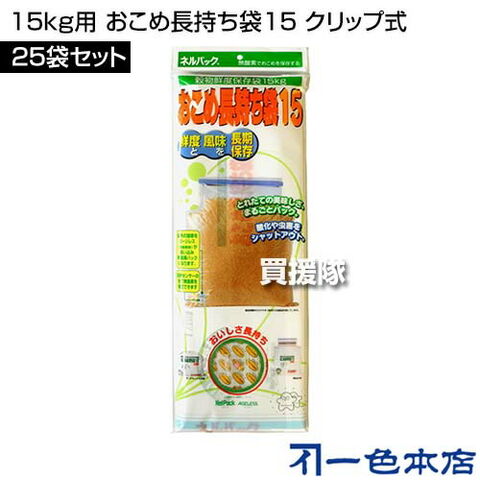 《法人限定》一色本店 15kg用×25袋セット おこめ長持ち袋15 クリップ式【紙製米袋 紙袋 米袋 玄米 新米 精米 保管 保存 鮮度 維持 保つ 保存袋 30kg用 約1年間保存 コクゾウムシなど 害虫 虫 防止 防ぐ ネルパック NelPack ネルパックシリーズ】【おしゃれ おすすめ】