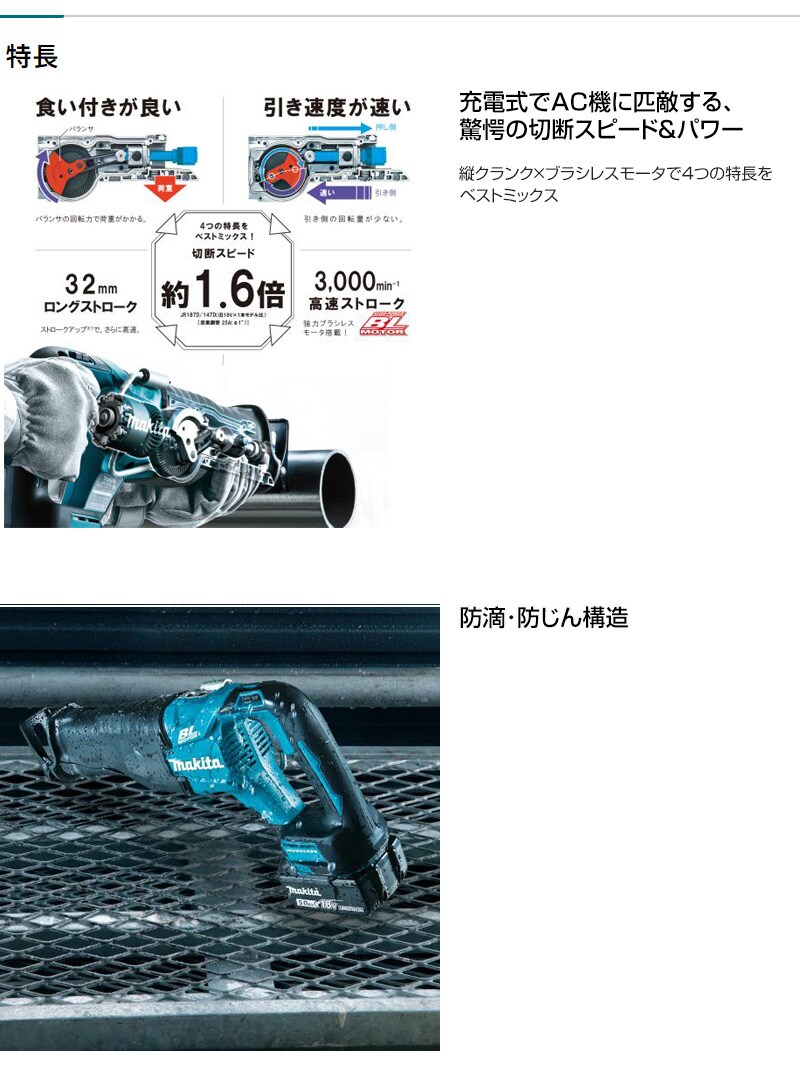 【充電式でAC機に匹敵する、驚愕の切断スピード&パワー】縦クランク×ブラシレスモータで4つの特長をベストミックス