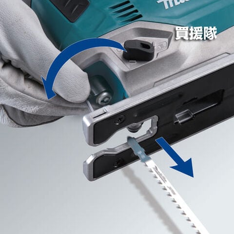 【工具レスブレード交換】装着はブレードを差し込むだけ。クランプを回すとワンタッチで取り外せます。