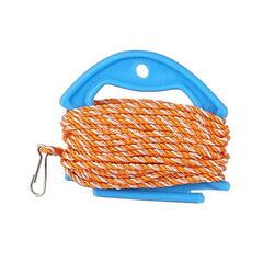 (1)「カニとって」に、長めの釣り糸やロープを結びつけます。(リールの付いた投げ竿を使うと便利です)