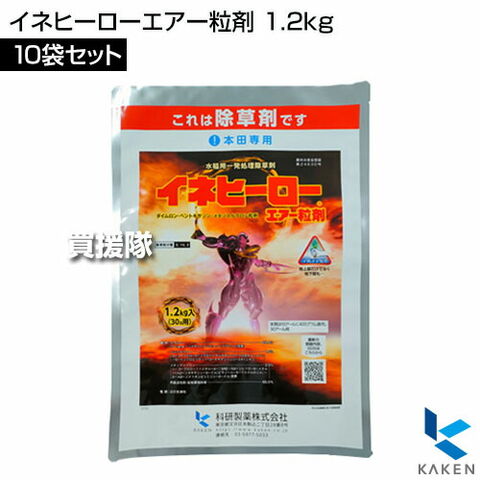 《法人限定》科研製薬 イネヒーローエアー粒剤 1.2kg×10袋セット 【水稲 すいとう 水田 田んぼ 稲 イネ 水稲栽培 一発処理 用 除草剤 雑草 草 対策 移植直後 ノビエ3葉期 多年生 カヤツリグサ 湛水散布 湛水周縁散布】【おしゃれ おすすめ】