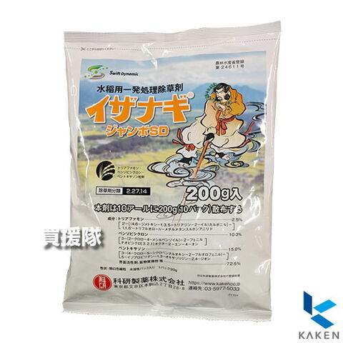 科研製薬 イザナギジャンボSD 200g 【直播 水稲 すいとう 水田 田んぼ 稲 イネ 水稲栽培 一発処理 用 除草剤 雑草 草 対策 ノビエ3.5葉期 SU抵抗性雑草 難防除多年生雑草 幅広い草種に有効 田植同時処理 無人航空機に】【おしゃれ おすすめ】