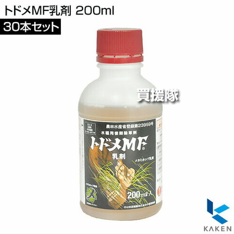 《法人限定》科研製薬 トドメMF乳剤 200ml×30本セット 【後期 直播 水稲 すいとう 水田 田んぼ 稲 イネ 水稲栽培 用 除草剤 雑草 草 対策 2週間程度 土壌処理効果 展着剤不要 耐雨性 安全 高葉令 ノビエ】【おしゃれ おすすめ】