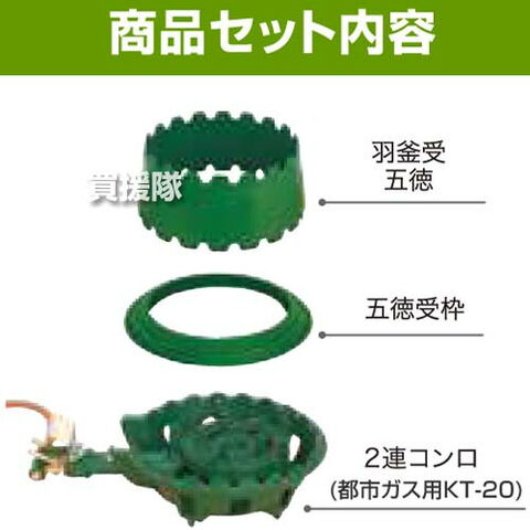 セット内容 2連コンロ(KT-20/都市ガスタイプ)、羽釜受五徳、五徳受枠