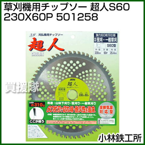 小林鉄工所 草刈機用チップソー 超人S60 230X60P 501258【草刈機 刃 刈払機 チップソー 刈 草刈 替刃 刈払 替え刃 草刈り 刈払い 草刈り機 部品 刈払い機】【おしゃれ おすすめ】