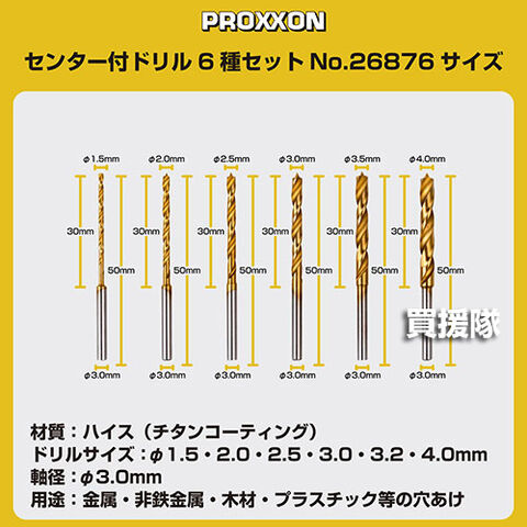 キソパワーツール センター付ドリル 6種 セットホルダー付 No.26876 【ミニルーター用 先端工具 金属 非鉄金属 DIY 工具 道具 ツール 工作 作業 穴あけ 穴 オプション アタッチメント プロクソン PROXXON】【おしゃれ おすすめ】