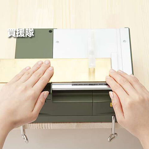 安全性、作業性を兼ね備え、卓上で手軽に直線切り、角度切りが行える小型卓上丸鋸盤です
