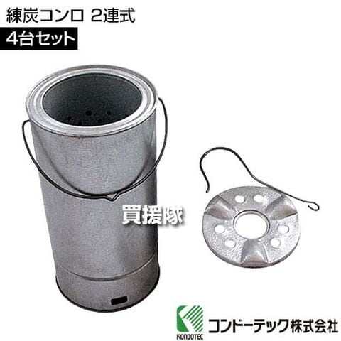 コンドーテック 練炭コンロ 2連式 4台セット 【養生用 練炭コンロ 炭 コンクリート セメント 乾燥 養生 土木 建築 工事 現場 施工 冬場 水分凍結 防止 対策 保温 15~17時間使用可能】【おしゃれ おすすめ】